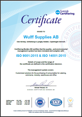 Wulff Supplies AB innehar ekologiskt certifikat SE-EKO-01.