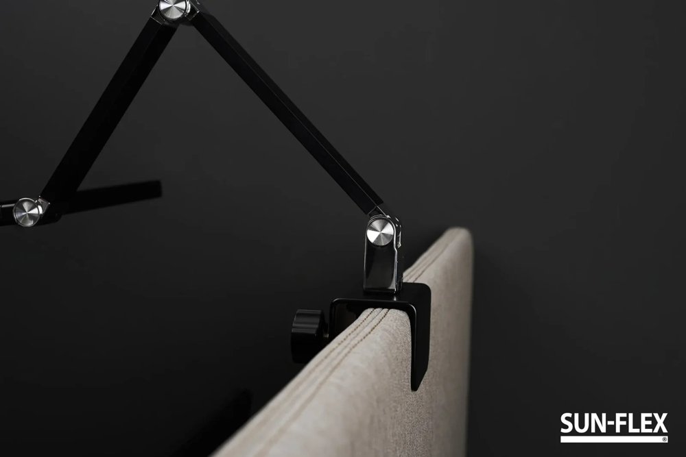The specially designed mounting bracket allows the fixture to be attached directly to the top edge of the partition wall, without affecting its function. Thanks to the adjustable clamp, SUN-FLEX®SCREENLITE™ PANEL fits most types of screen walls and can be easily moved or repositioned when needed