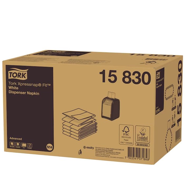 Streamline your business. Tork Xpressnap Fit® Advanced Napkin is perfect for fast food restaurants, bars, pubs and kiosks. Tork Xpressnap Fit® not only serves more guests between refills (compared to traditional napkin dispensers), but also takes up less storage space and reduces wasted napkins by more than 50%. Tork Xpressnap Fit® White Dispenser Napkin (2-ply) is a good choice for businesses looking to create improved guest experiences.