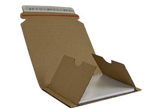 Book wraps provide an efficient and stylish mailing solution for books and other flat, rectangular items. Made from triple-layer corrugated cardboard (multiwell), the folded flaps offer excellent protection for your shipment. Some variants are self-locking with adhesive closure and double-sided tape.