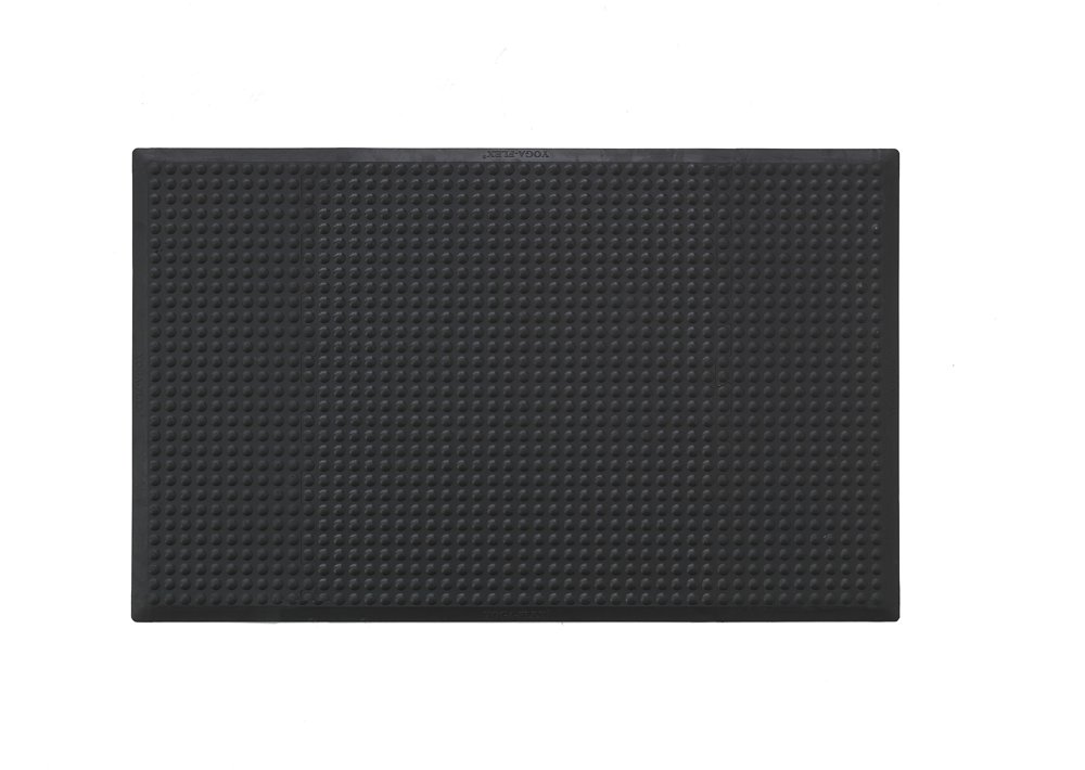 Yoga Flex Industri is made from nitrile and natural rubber; the especially dense rubber compound makes it difficult for bacteria to gain a hold. The nitrile rubber content means it is able to withstand oils, grease and chemicals while making the mat highly hard-wearing and heat resistant. Modular system consisting of centre and end pieces that fit together to the preferred length; also available as a full size mat 60 × 90 cm. The round bubbles on top of the mat stimulate your feet and improve blood circulation. Worn-out modules are easy to replace and the mat can be extended or reduced as required, which is cost-effective.