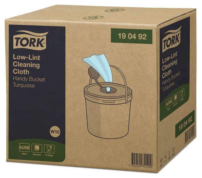 Tork Precision cleaning cloth is durable and flexible. The cloths are delivered as a roll in a bucket that can be used to make your own wet cloths with the chemicals you need. It also dispenses one cloth at a time and has a tight-fitting lid that prevents the cloths from drying out.