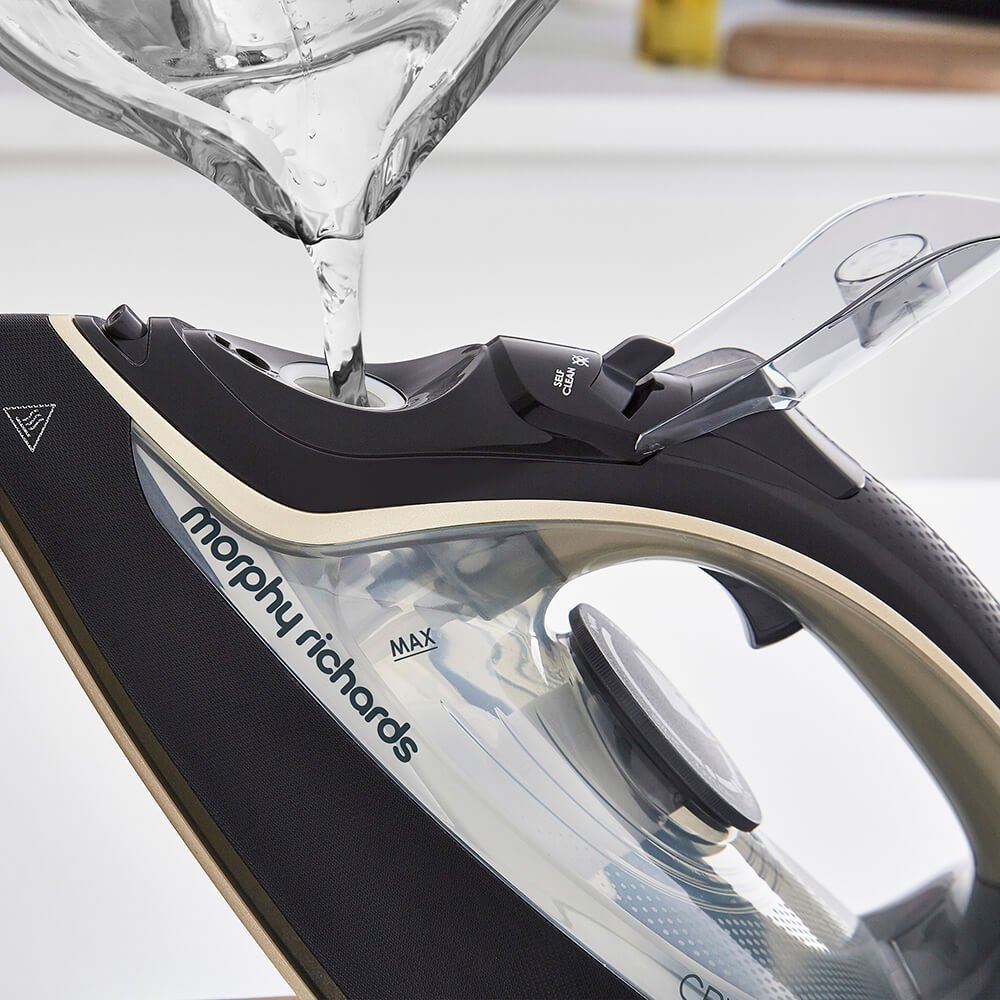 The Crystal Clear Gold Iron has a clear water tank making the water level easy to view, and comes with an extra-long 2.5m cable for easy reach.