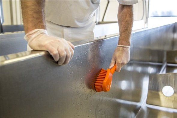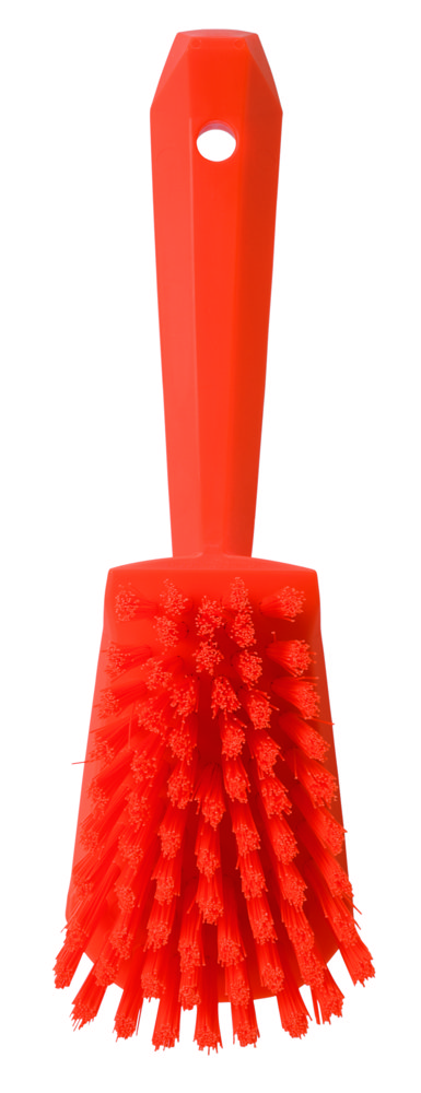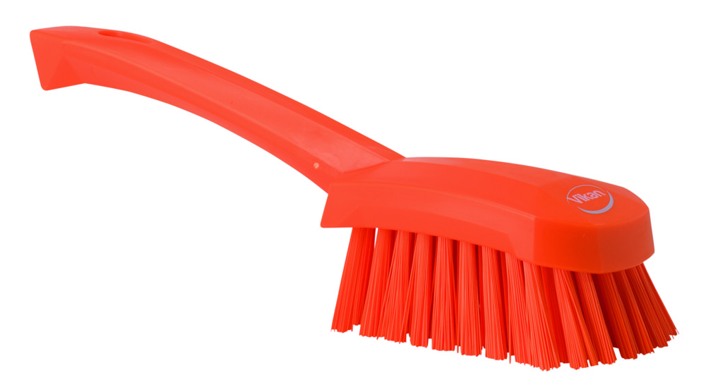 This scrub brush has a short, ergonomic handle for easy and effective daily cleaning and is perfect for removing stubborn dirt from conveyor belts, production lines, machinery and preparation surfaces.