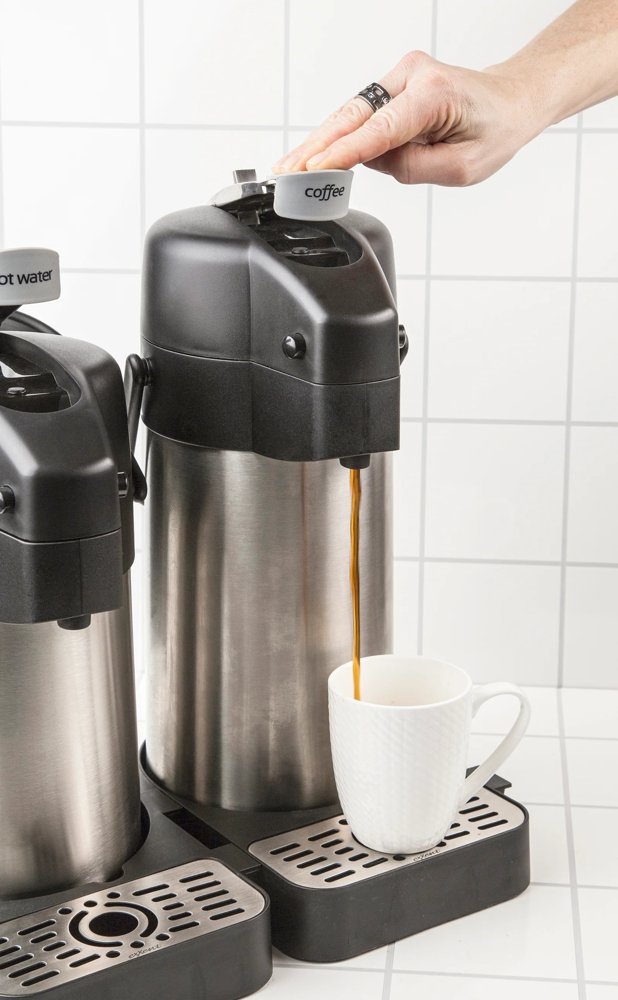 Includes one marker for coffee and one for hot water. Designed for professional use and perfect for cafés or lunch buffets.