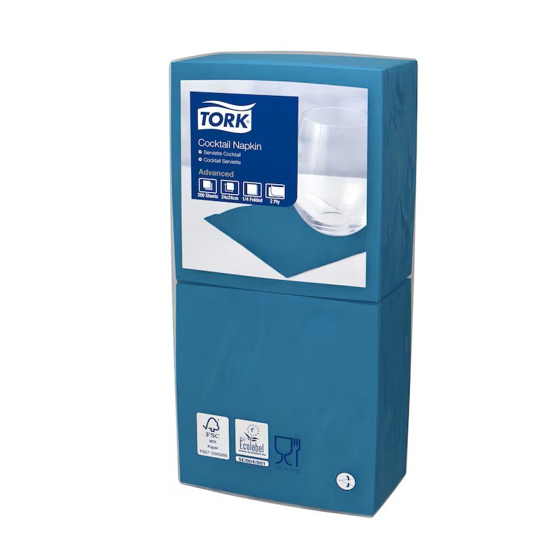 Tork cocktail napkins are perfect for bars and cafes that serve light food and drinks. They are available in a large selection of modern and classic colors that give the table settings an elegant touch.
