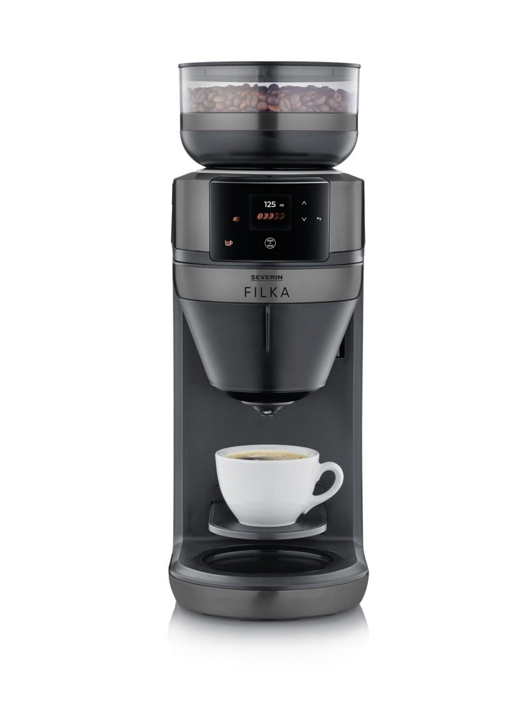 The FILKA filter coffee maker is the first on the market that is fully automatic, and with the touch of a button you can enjoy a cup of freshly ground filter coffee. Whether you prefer a large or small cup, takeaway mug, glass jug or thermos jug, the coffee maker automatically doses the right amount of coffee for your chosen cup size.