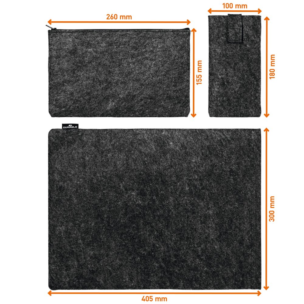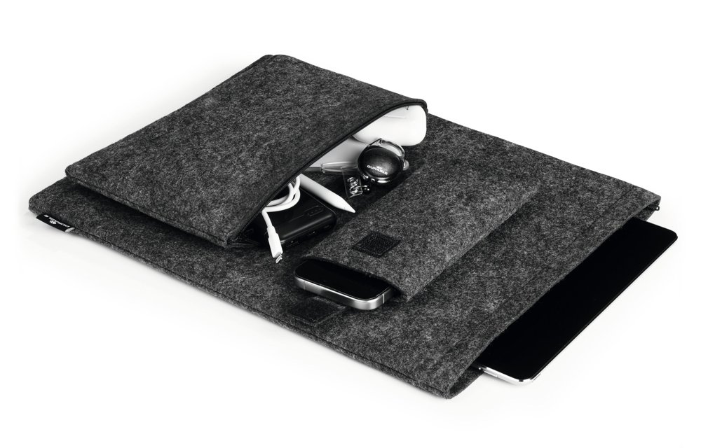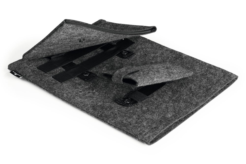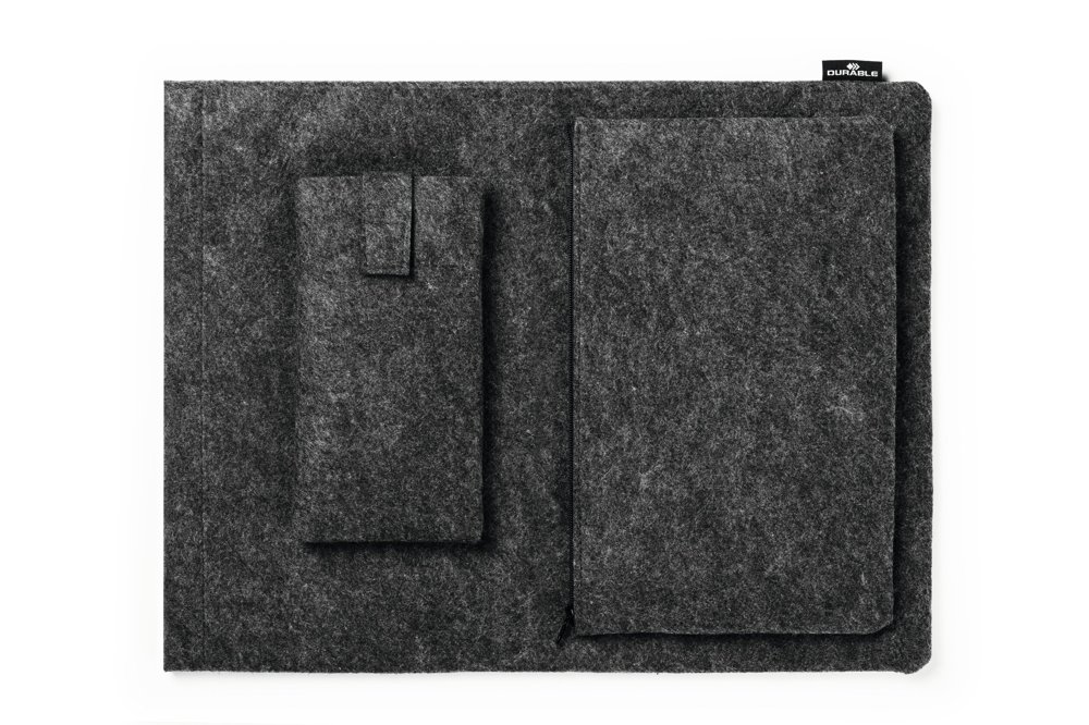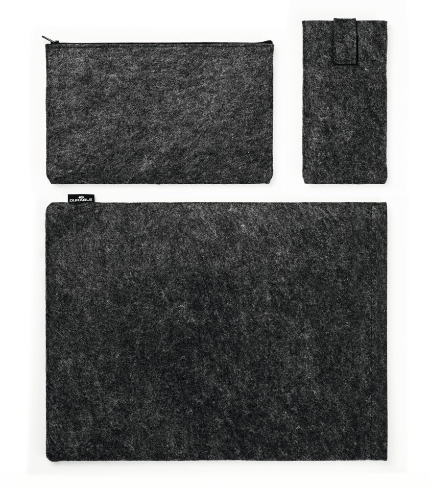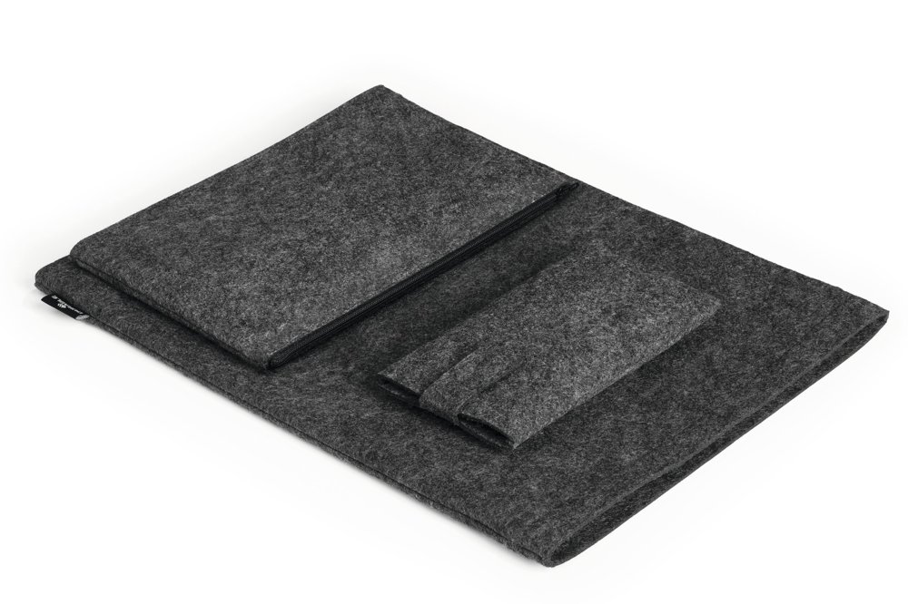 • Protective cover for tablets or laptops made from 60 % recycled PET felt, combined with additional accessory bag