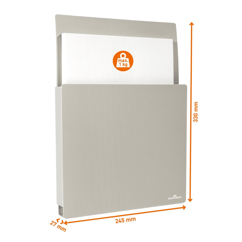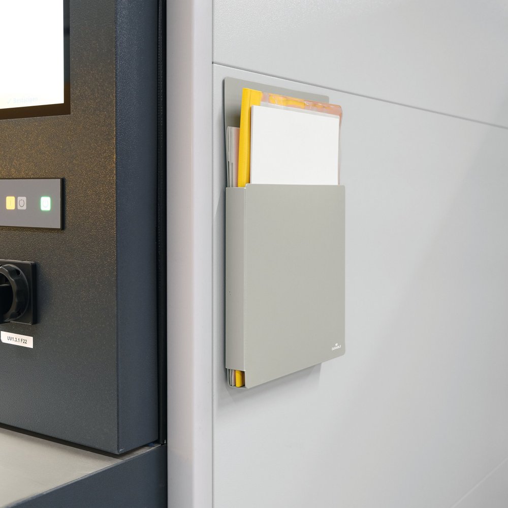 Paper tray, form tray, brochure holder, document holder - whatever you call it, the INFO BOX A4 is magnetic, a sturdy tray made of 95-100% collected recycled, grey polypropylene plastic. The tray holds 22 mm thick bundles of information sheets, questionnaires, price lists and other information that needs to be available in paper form at trade fairs, in waiting rooms, exhibition rooms, receptions and other places. This model is attached magnetically to e.g. whiteboards or to our floor sign stand INFO STAND BASIC A4 (art. no. 501257). Load capacity of up to approx. 1 kg.