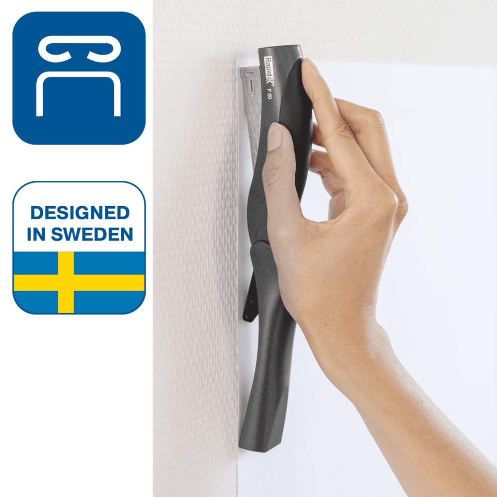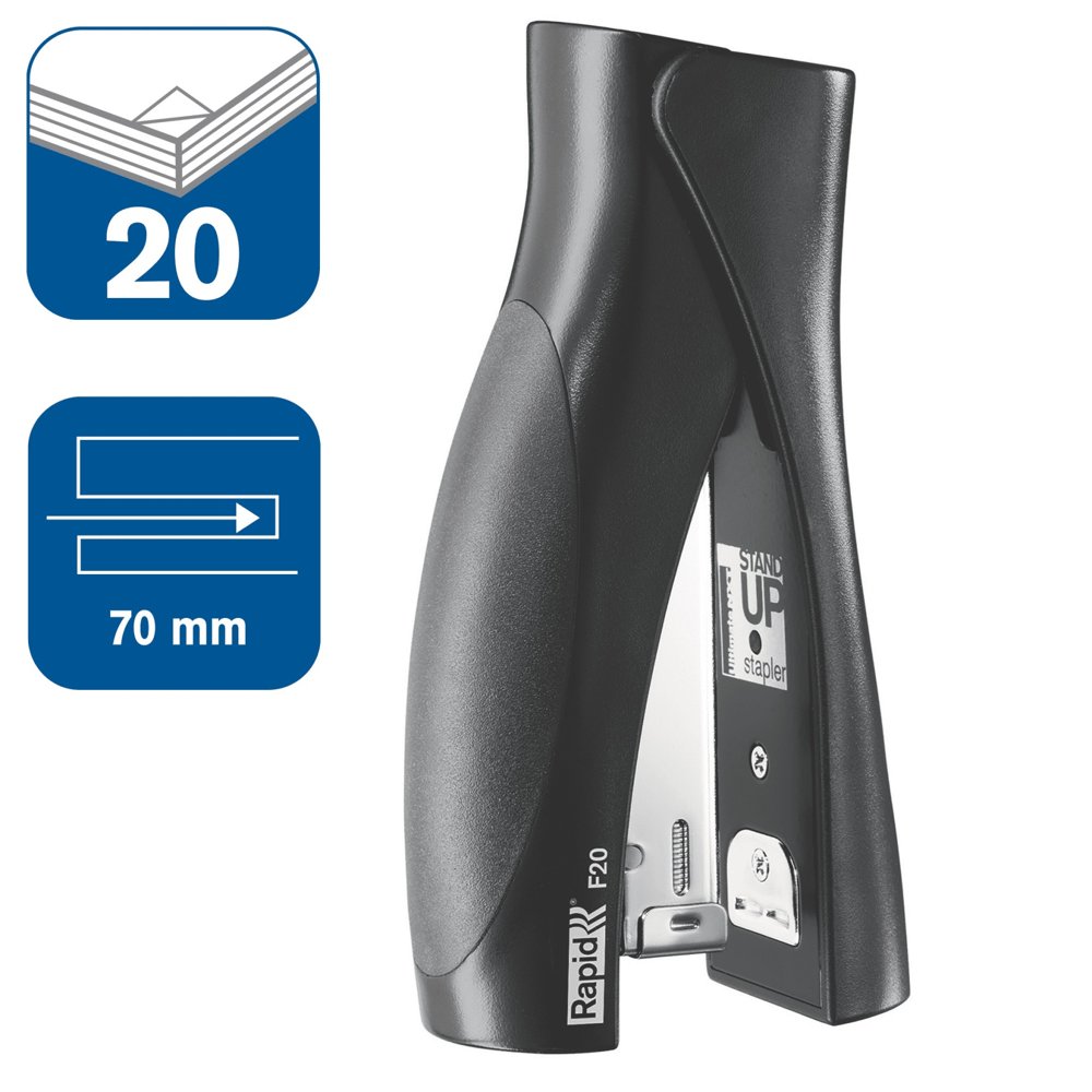 Convenient high-performance upright stapler with steel mechanism and ergonomic rubber handle. Perfect for home and office.