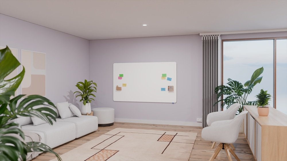 The ingenious mounting system creates a modern appearance in the room and makes the whiteboard look like it's floating on the wall.