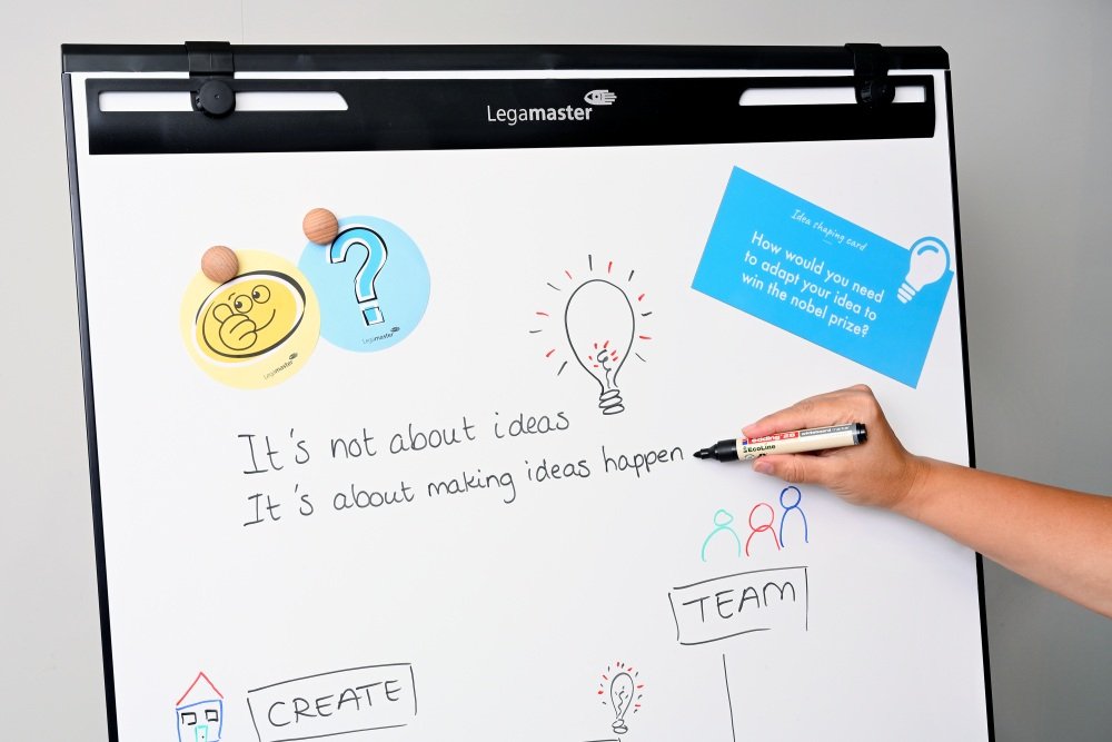 • Magnetic and dry-wipeable lacquered steel whiteboard surface (H 105 x W 68 cm)