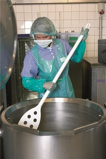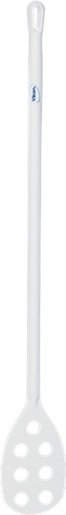 This fully-moulded Mixer features a long handle and a small blade with holes. Suitable for stirring food ingredients in large pots and vats, the holes ease stirring by allowing ingredients to pass through the stirrer blade.