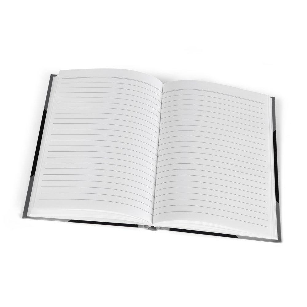 Hardback notebook with 70g paper and a steady cover in maching black and silver. Pre-printed address label on the front. Contains 78 sheets/ 156 pages.