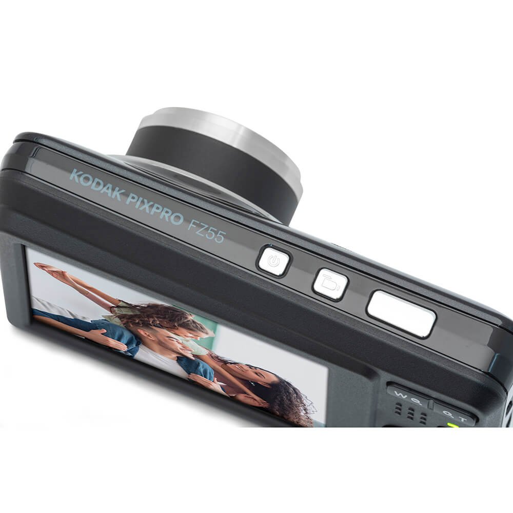 The Kodak PIXPRO FZ55 Digital Camera is a small and easy-to-use Friendly Zoom camera from the Kodak PIXPRO collection. This point-and-shoot camera features a 28mm wide angle lens with a 16MP 1/2.3" CMOS sensor and 2.7" LCD screen.