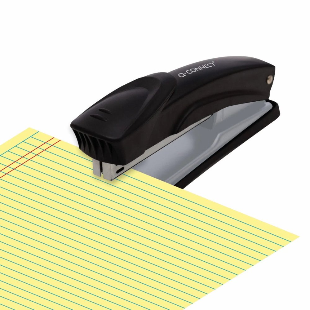 Q-Connect Full Strip Metal Stapler. Quality all metal construction with ABS cap for comfort. Accepts no.26/6 and 24/6 staples with a 20 sheet capacity and a throat depth of 76mm. Colour - Black.