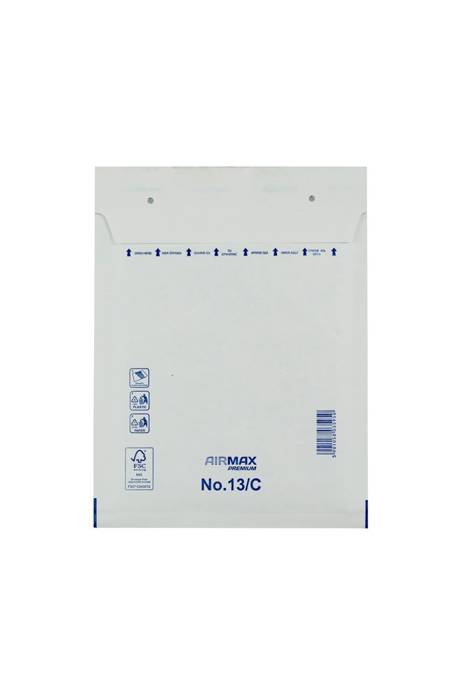 Bubble envelope Airmax Premium of 75g paper lined with 45g air bubble foil that absorbs shocks and prevents moisture from penetrating. With the smart reopening solution, the envelopes can be closed on the plastic strip if you want it to be easy to open again. If it is instead closed on paper, the envelope cannot be opened without leaving clear marks. The product is FSC MIX certified.