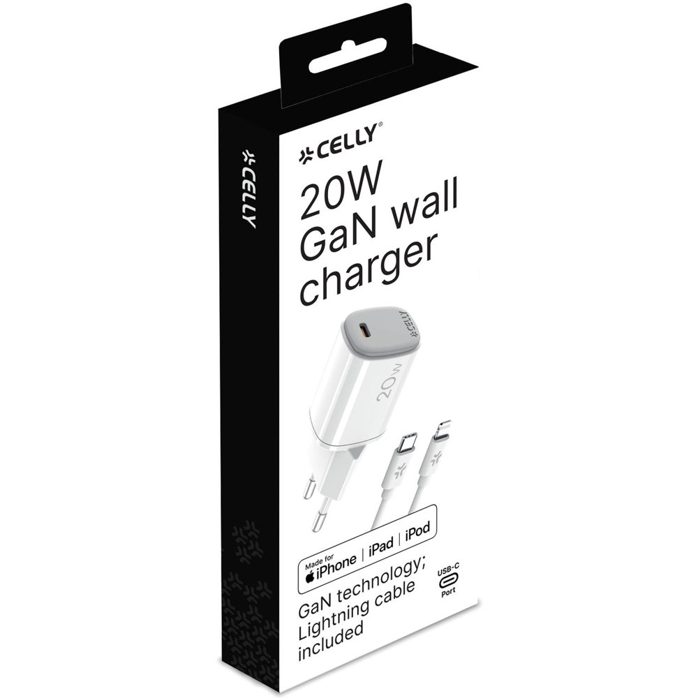 Celly USB charger USB-C PD 20W + 1m cable USB-C to Lightning white